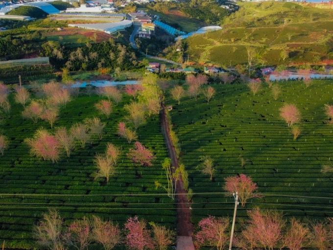 Đầu xuân cũng là mùa mai anh đào Đà Lạt khoe sắc, những cây hoa anh đào ở đồi chè Cầu Đất bắt đầu có nhiều cây khoe sắc.