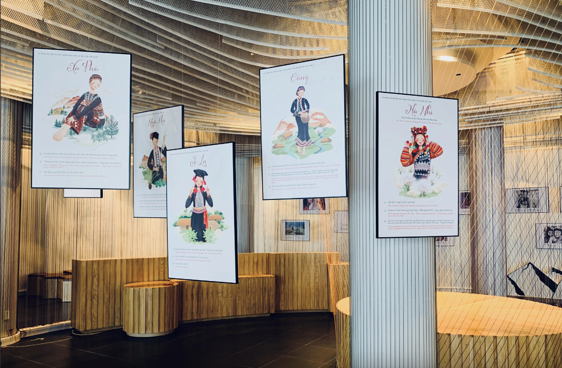 Không gian triển lãm, theo chia sẻ của nhà báo - đạo diễn Nguyễn Bông Mai, cũng không chỉ giới hạn tại khu vực bên trong nhà ga đến cáp treo, mà được nối dài tới Bản Mây - nơi bà con đồng bào các dân tộc thiểu số gồm Xa Phó, Tày, Giáy, Dao (đỏ), Mông (đen), Thái (trắng) tái hiện những nét văn hóa đặc trưng độc đáo nhất của mình tới du khách, mang tới cho họ một hành trình Tây Bắc trọn vẹn với nhiều triền cảm xúc nhất.